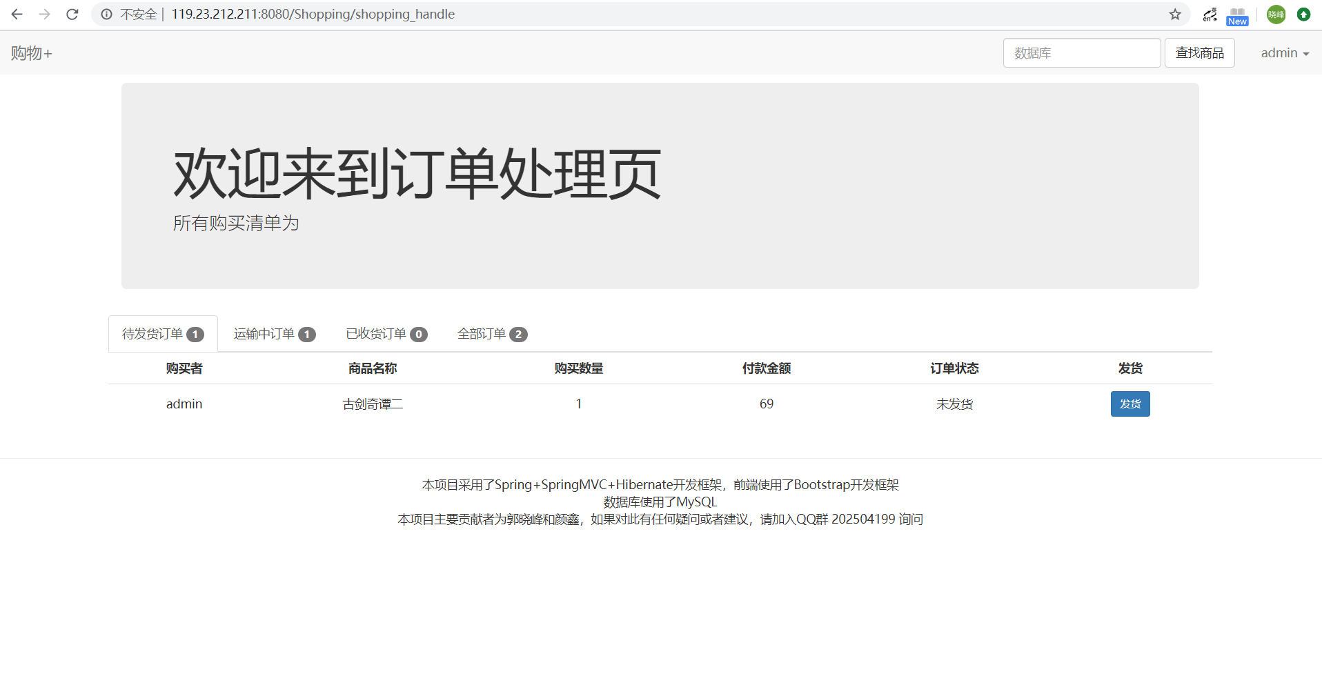 本项目使用Spring+SpringMVC+Hibernate来实现了一个网上商城系统,可以使用maven构建为war包进行部署,也可以使用docker直接运行。