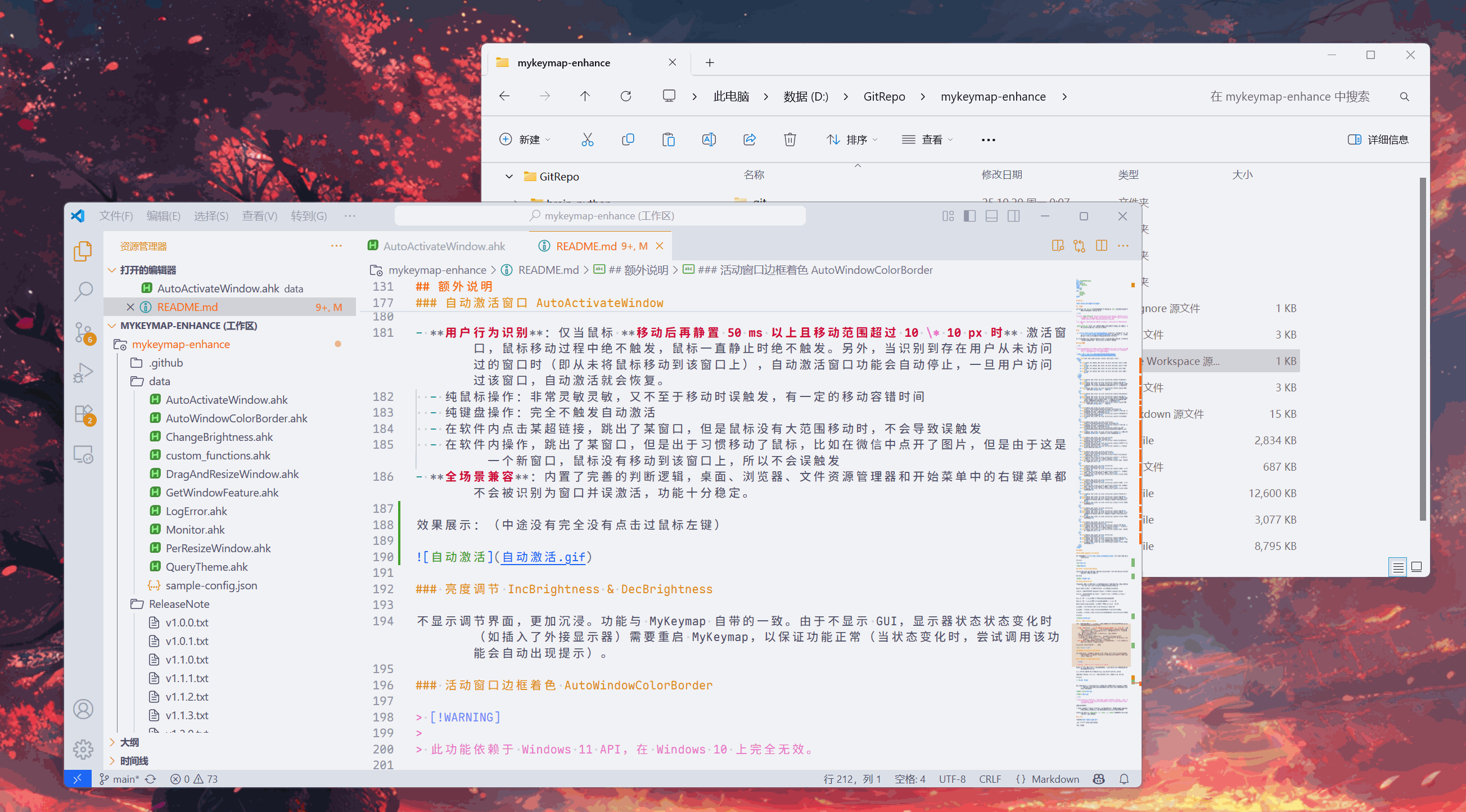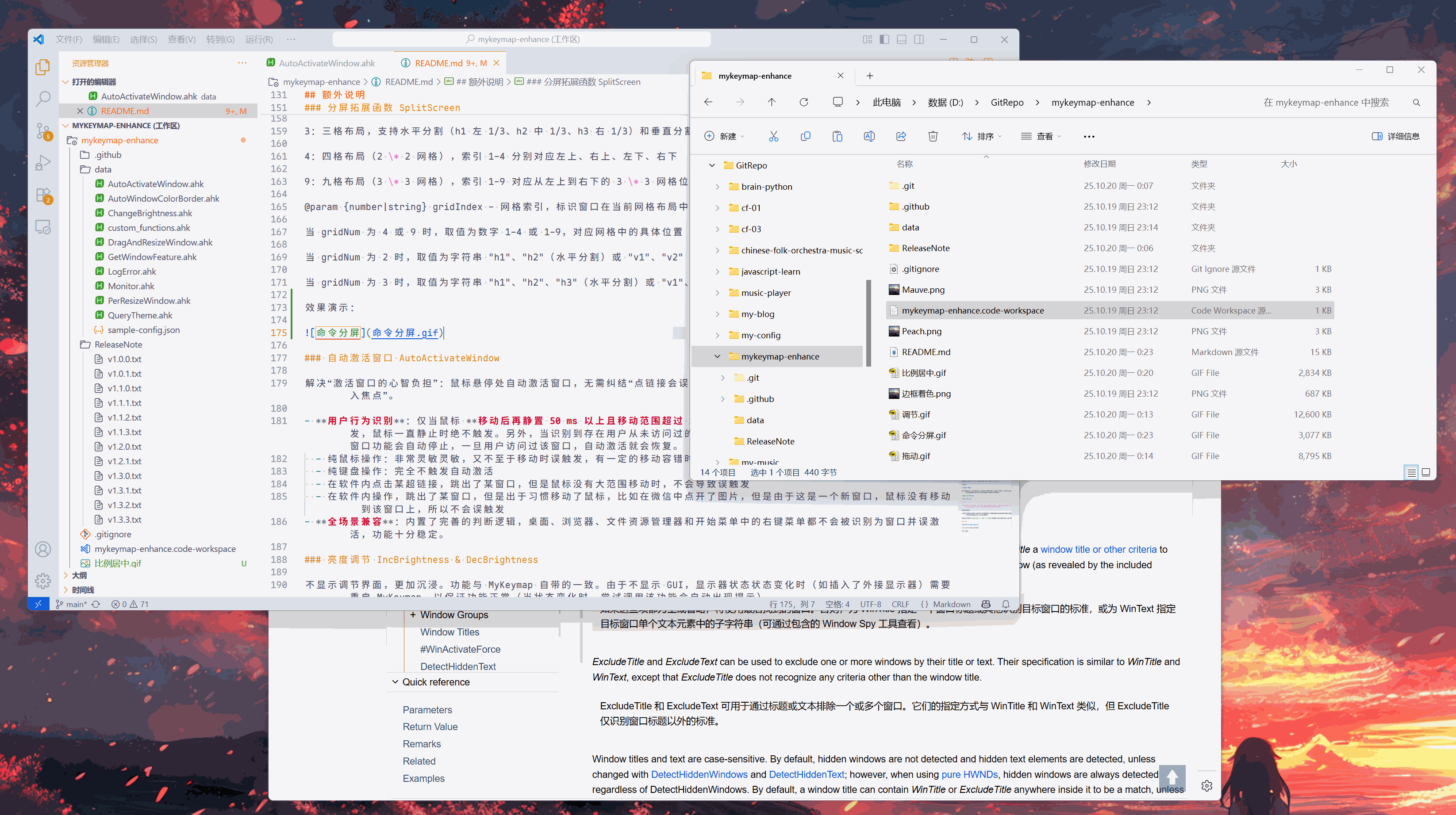 使用 MyKeymap 已经有相当长一段时间了,学习了一部分 AutoHotkey 后,我现在可以开发一些额外的功能。目前,这些脚本全部无需依赖 MyKeymap,可以直接由 AHK 调用。