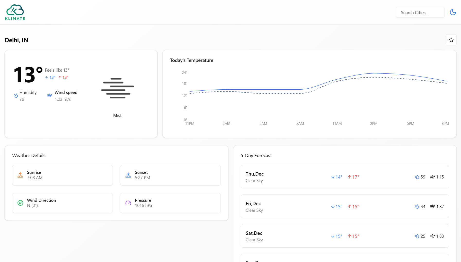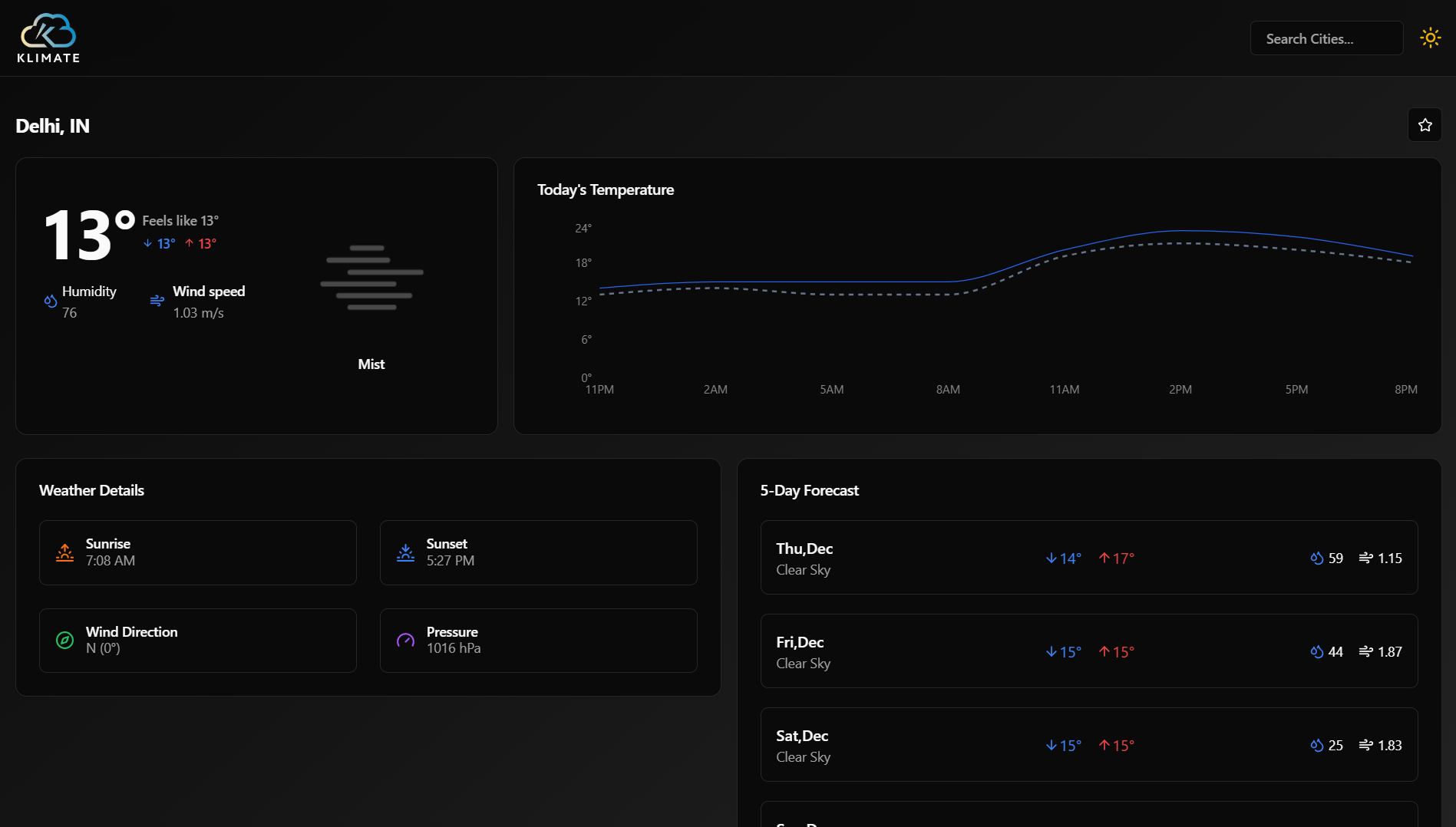 Klimate is a modern weather application that brings real-time weather updates and forecasts to your fingertips. With a sleek user interface and reliable data, Klimate helps you plan your day better. 🌍