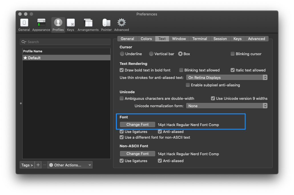 in order to take advantage of the configuration settings that come along with the patched font you will need to have the zsh shell and oh-my-zsh installed