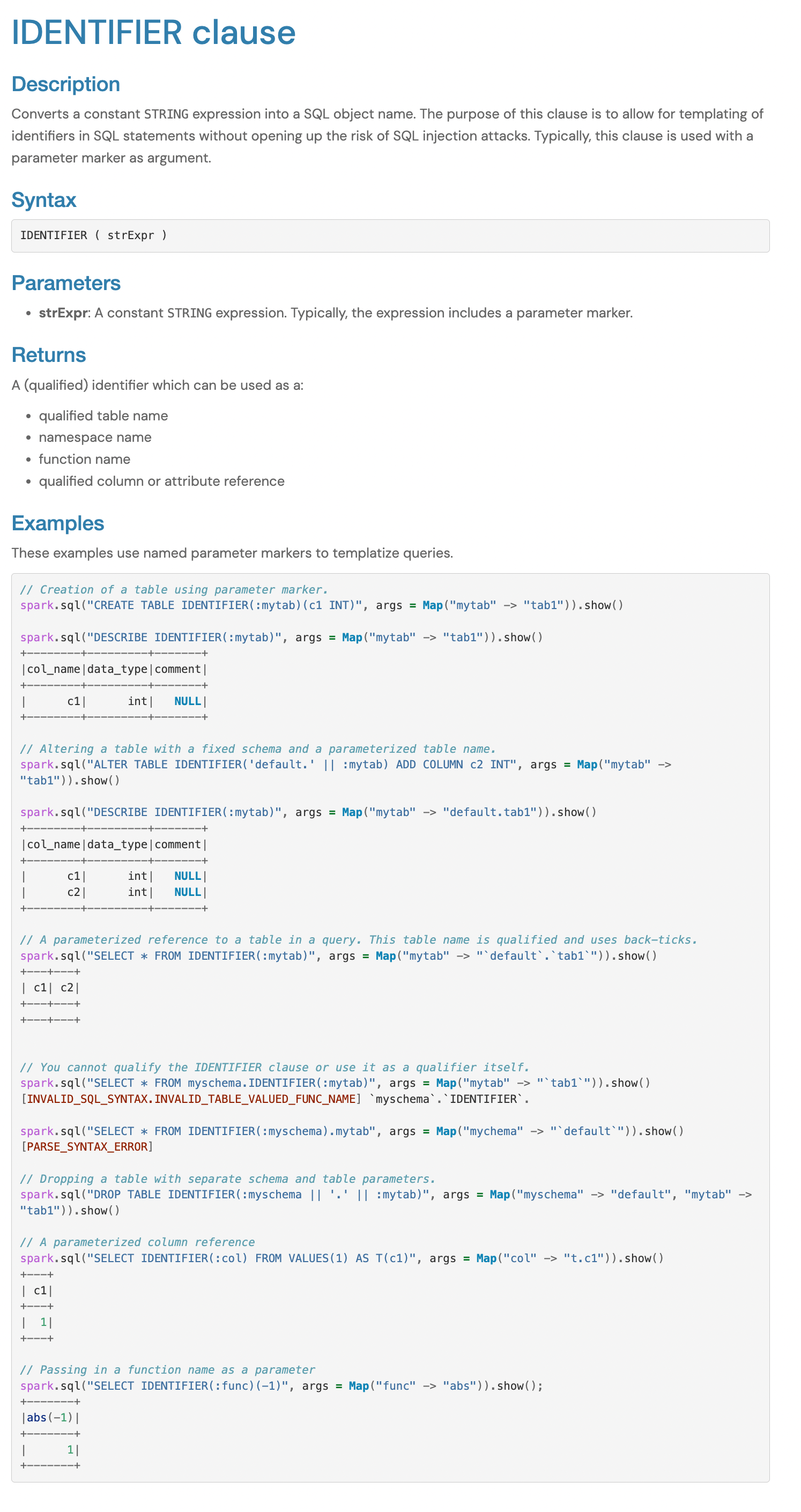 Closes #42506 from srielau/SPARK-43205-3.5-IDENTIFIER-clause-docs.