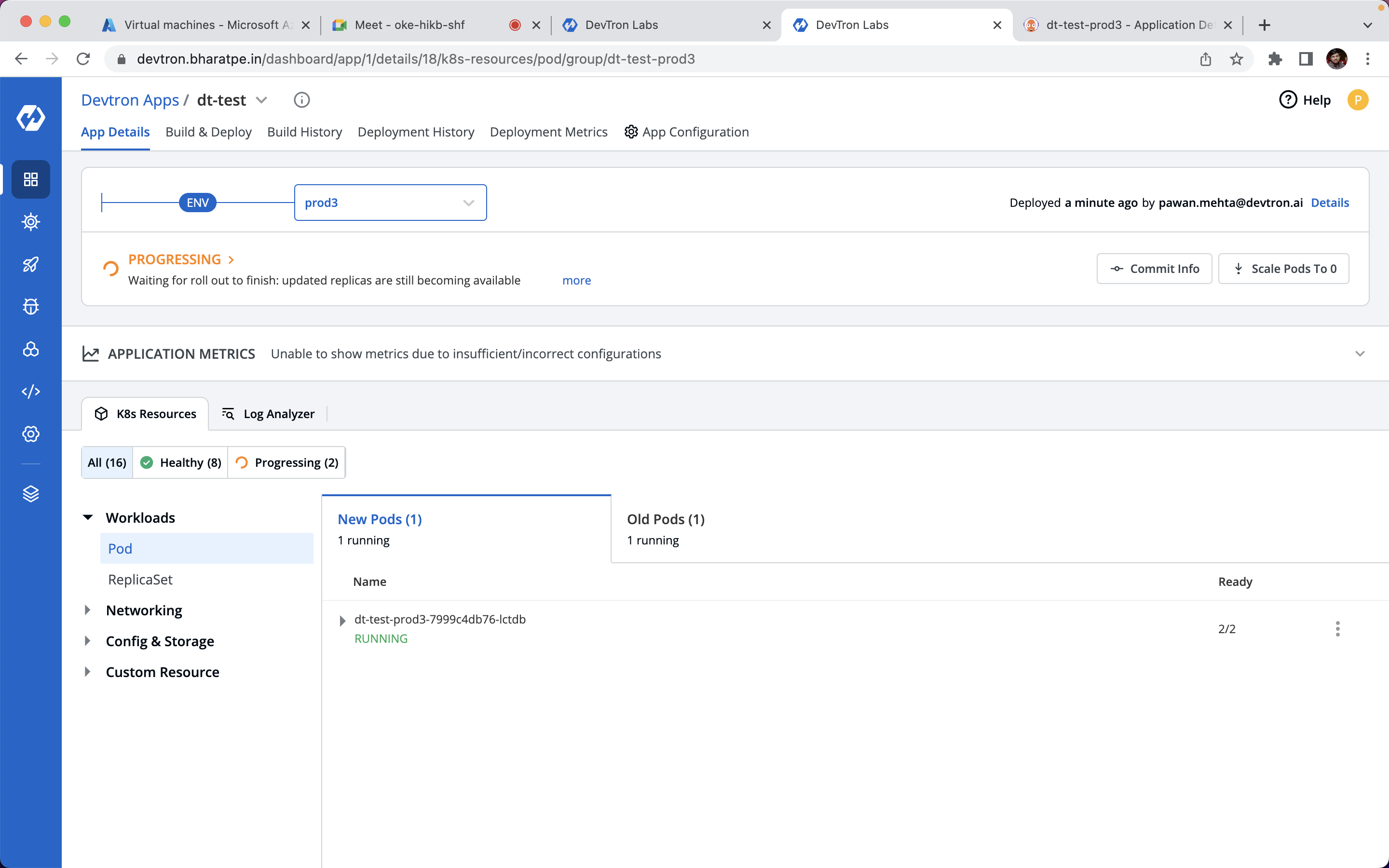 Initially, on deployment, we show Application status as "missing or degraded" always