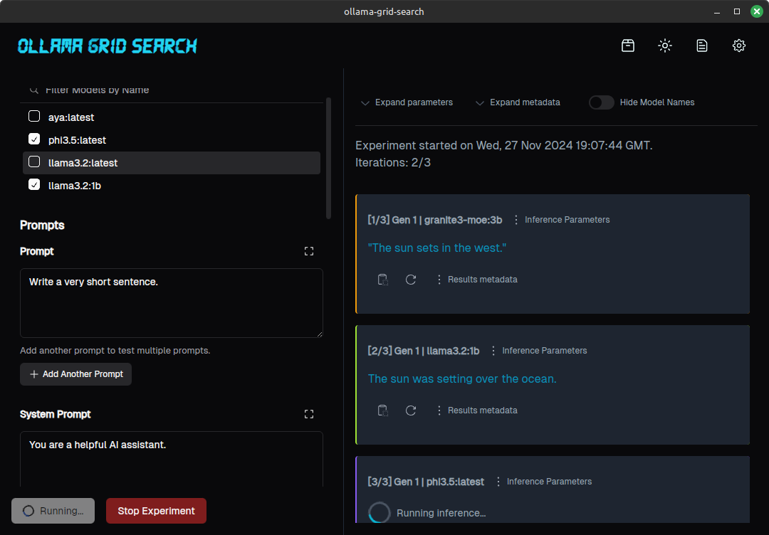 This project automates the process of selecting the best models, prompts, or inference parameters for a given use-case, allowing you to iterate over their combinations and to visually inspect the results.
