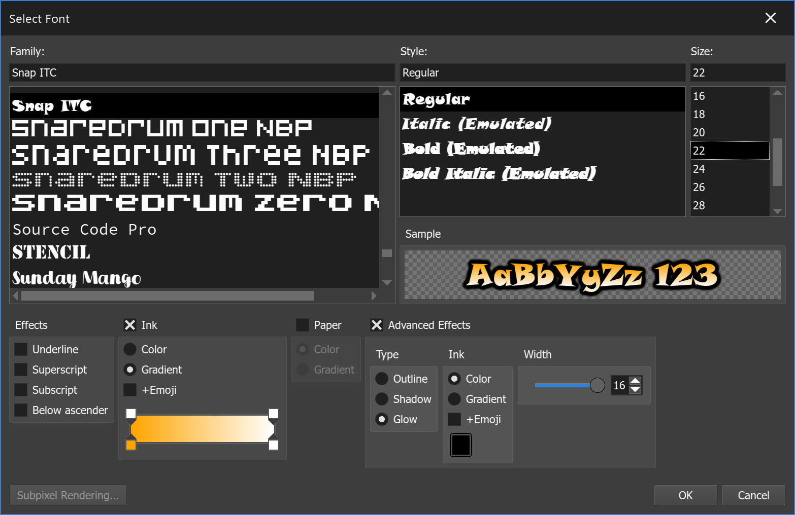 - "text_edit" widget supports multiple fonts, text colours (with optional gradient effects), colour emojis and rendering text in columns;