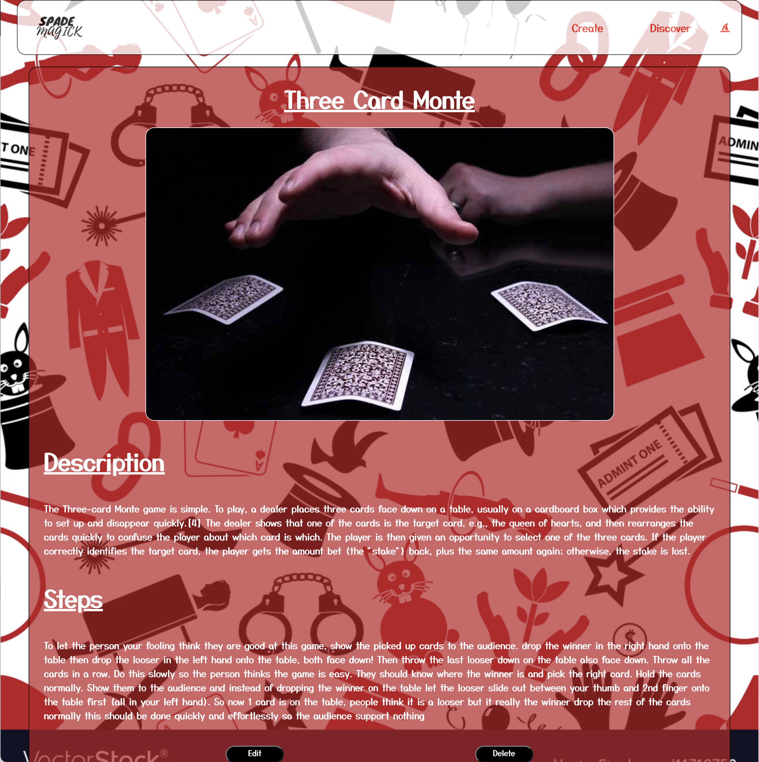 Spade Magick is a platform created for magicians, amateurs and even fans of magic. Here, magicians are able to post their creations to either show them of even post instructions and media on how to perform each illusion. All illusions are devided by categories which will allow the user to find an illusion quicker and get to enjoy the magic faster.