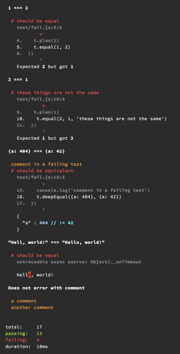 npm i -g tap-simpletape test/*test.js | tap-simpleimport tapSimple from 'tap-simple'