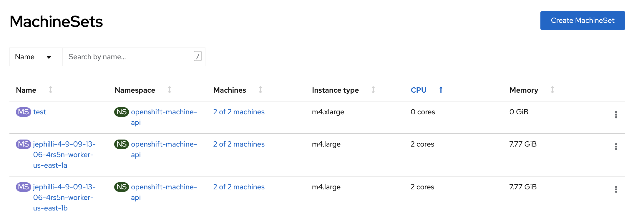 Screenshot (note that "test" MachineSet has junk data so I could test the sorting; it does not reflect actual data for the instance type):