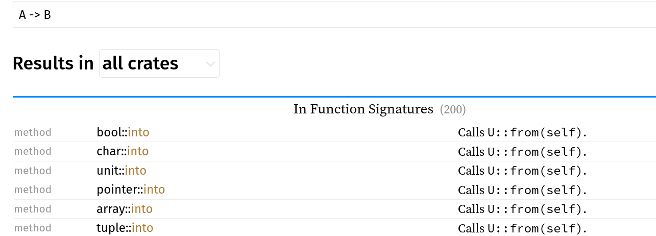 Vec<Allocator>now matches only with a true vector of allocators, instead of matching the second type param. It also makes unboxing within generics stricter, soResult<A, B>only matches ifBis in the error type andAis in the success type. The top level of the function search is unaffected.i32 -> strand get back a function with the type signature&Future<i32> -> Box<str>.Find the discussion on