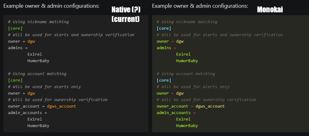I'm not dead set on these choices. They're just the best-looking to me, out of the options I tested (about 60-70% of the available styles) at https://pygments.org/demo/. Got a suggestion that looks better? I'm all eyes.