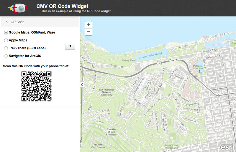 Shows a QR code for the current map to open mobile applications on your phone/tablet.