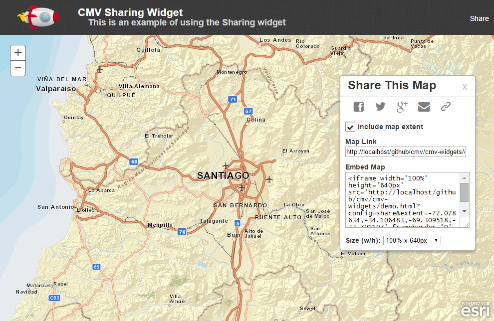 Share your map by using Facebook, Twitter, Google+, E-Mail, Link, or embedded iFrame code.