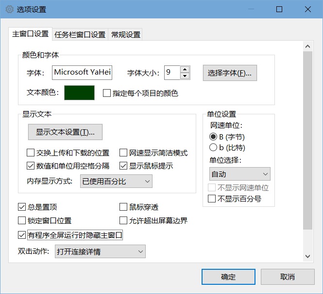 可以选择网速显示的单位,有 B(字节)和 b(比特)两个选项。