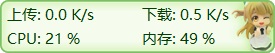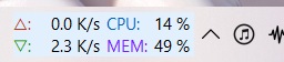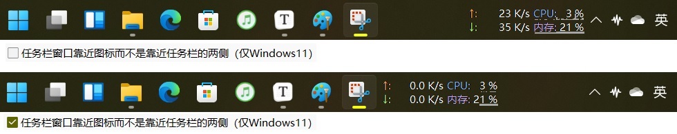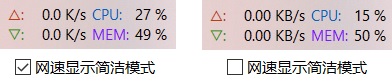 这个选项可以让网速显示避免占用更多的字符。勾选后,网速的小数位数将减少1,同时,当网速单位设置为B(字节)时不显示B。如下图所示。