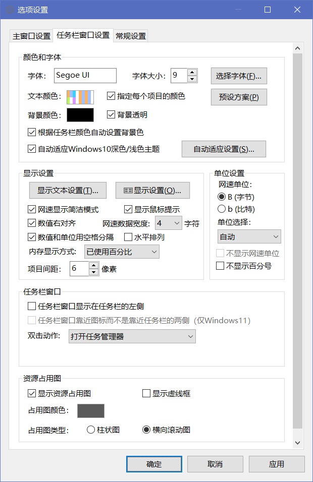 任务栏窗口文本颜色允许为每一项的标签和数据设置不同的颜色。