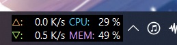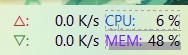 勾选后,任务栏CPU、内存等项目的背景中会显示一个表示对应项目资源占用情况的图形,如图所示: