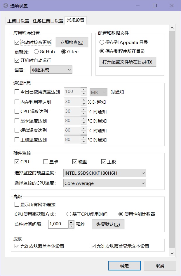 这里可以设置TrafficMonitor监控信息刷新的时间间隔。默认为1000毫秒。