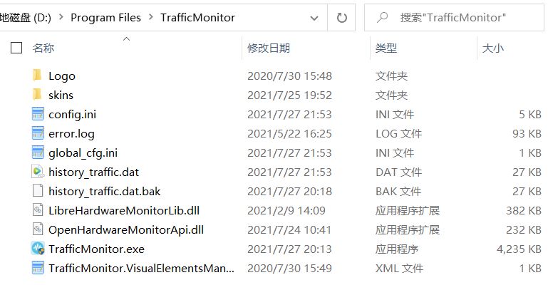 当“portable_mode”为false时,config.ini、history_traffic.dat、history_traffic.dat.bak和error.log这几个文件将会保存到“C:\Users\<用户名>\AppData\Roaming\TrafficMonitor”目录下。