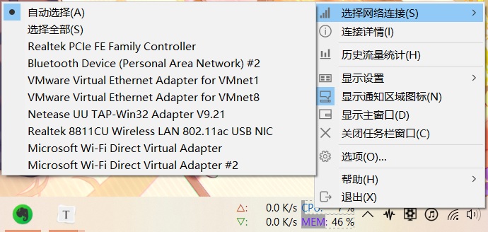 When selecting "Select All", TrafficMonitor will monitor the total traffic of all network connections in the list.